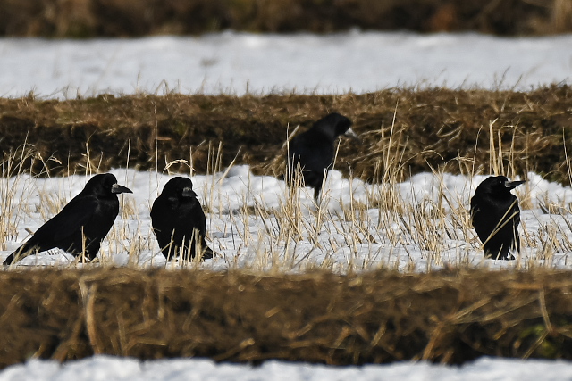 タシギは目の前まで飛んで来て採餌に夢中でしたが、オオハシシギは少し離れたところで休んでいるものが多かったです。 ぽつぽつの雨が上がったのは日没少し前からでした。コミミズク、ハイイロチュウヒは期待通り飛んでいました。こんなに楽しませてもらっているのにカラスが意地悪をしてごめんなさい。 |