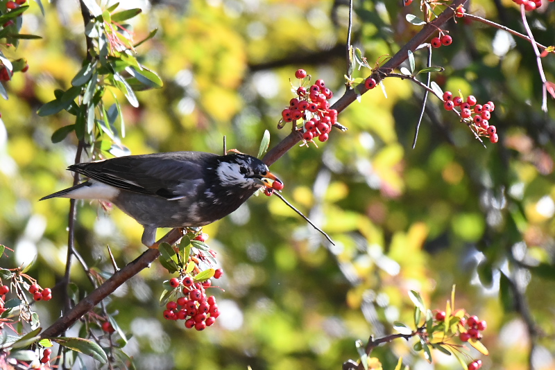 何年か前に東京都に現れたときは、残念な思いをしましたが、出会えてよかった。頻繁にピラカンサの実をたべにやってきていました。 ムクドリやメジロもこの実を食べていました。 |