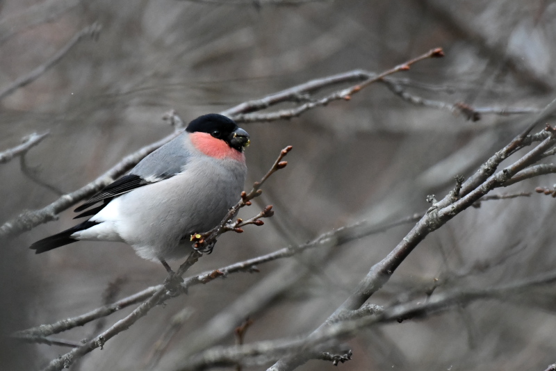 昨年の画像です。桜の芽を夢中で食べているウソを発見。そっと近づきました。でも、あまり気にしない様子です。雄、雌1羽ずつでした。 漁港ではクロガモ、スズガモ、シノリガモ、オオセグロカモメ、ワシカモメ、ウミアイサなどをみました。 |