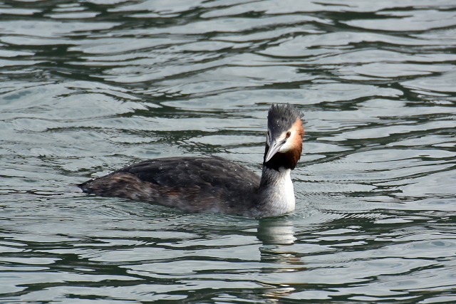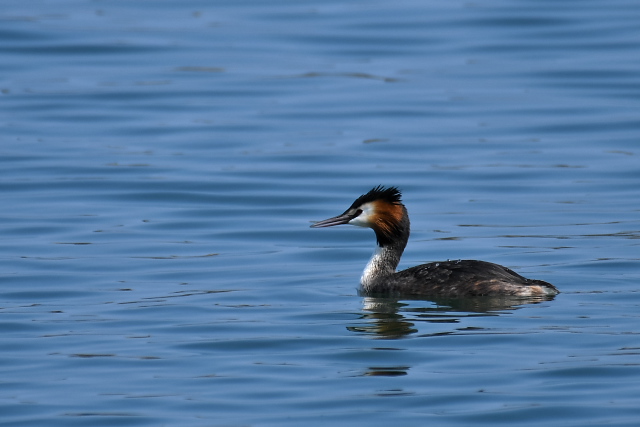 ハジロカイツブリの夏羽は迫力ある姿ですね。群れで狩りをしていいました。 |