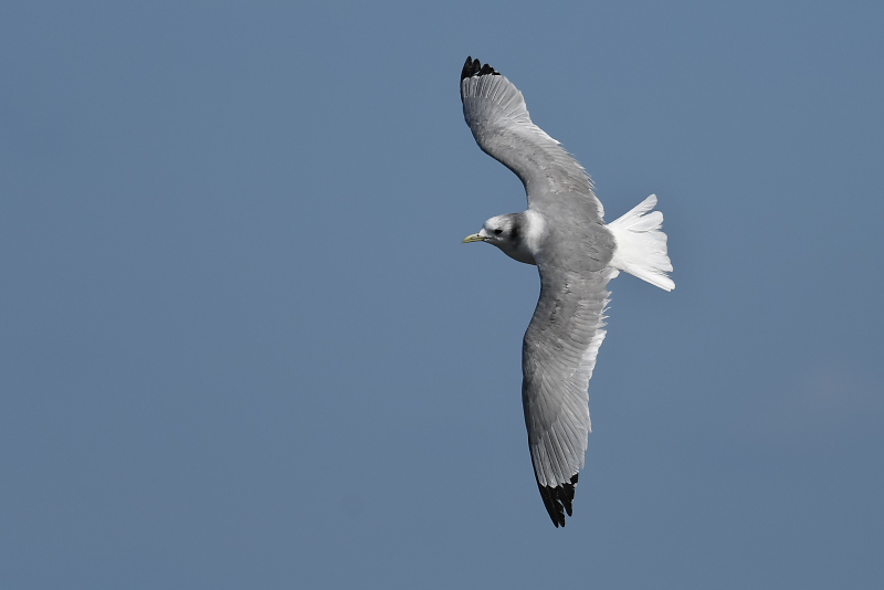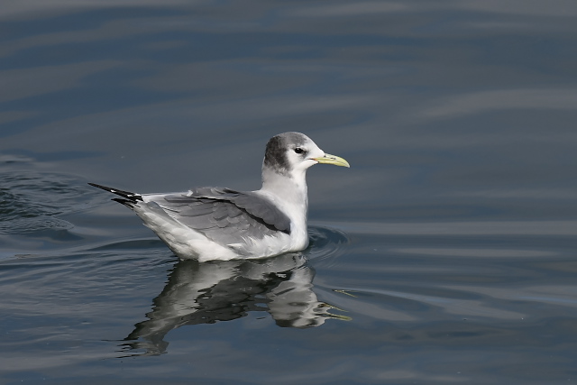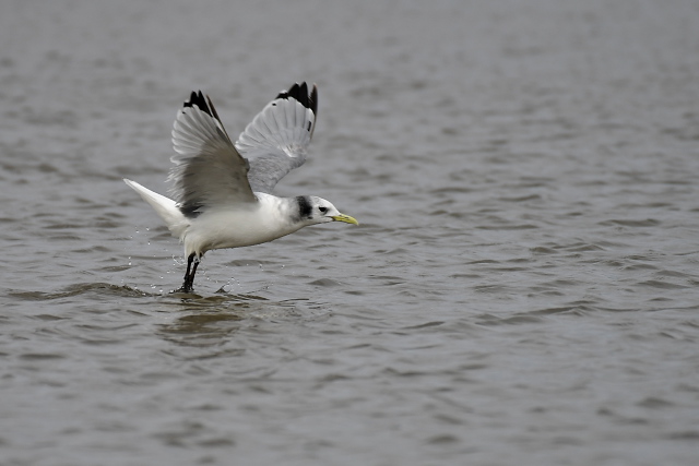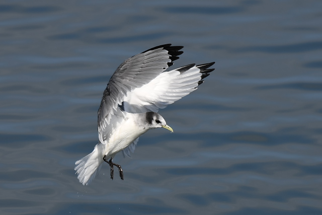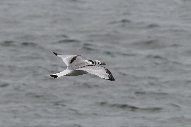 ミツユビカモメがビュンビュン飛んでいました。海上に浮かんで羽を休めるものもいて、しばらく楽しませてもらいました。他のカモメに対してわかりやすいので安心して写せます。 |