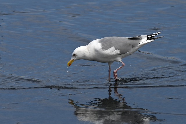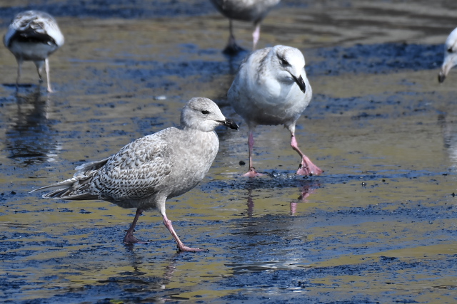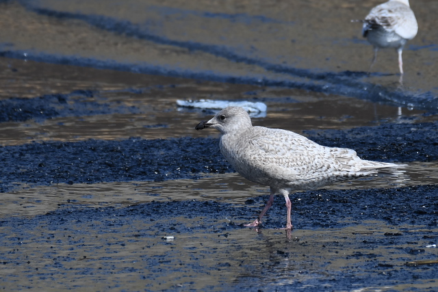 足先を失っているクロサギに出会いました。元気にたくましく生き延びているようです。頑張れ。 アイスランドカモメと教えてもらったカモメに再び出会いました。盛んに餌取りをしていました。 |