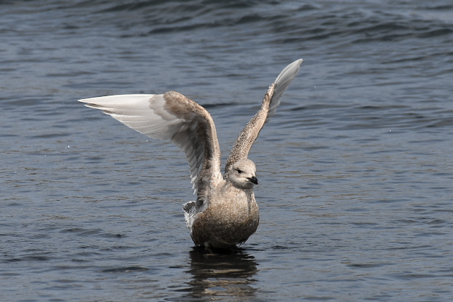 居あわせた方に、カナダカモメのレクチャーを受けて少し理解を深めました。ありがとうございました。わかりやすいミツユビカモメに対して、私にとっては難しいカモメです。 アイスランドカモメはさらに難解です。居あわせた人たちがアイスランドカモメだよ、といっていたのが写真のアイスランドカモメです。勉強しなくっちゃ。