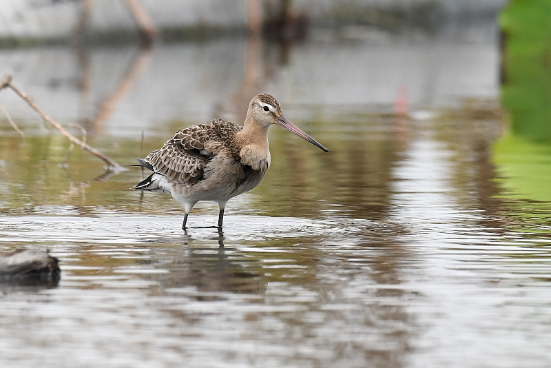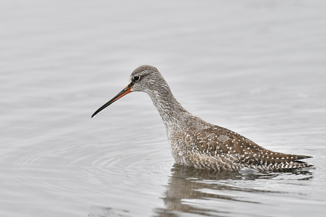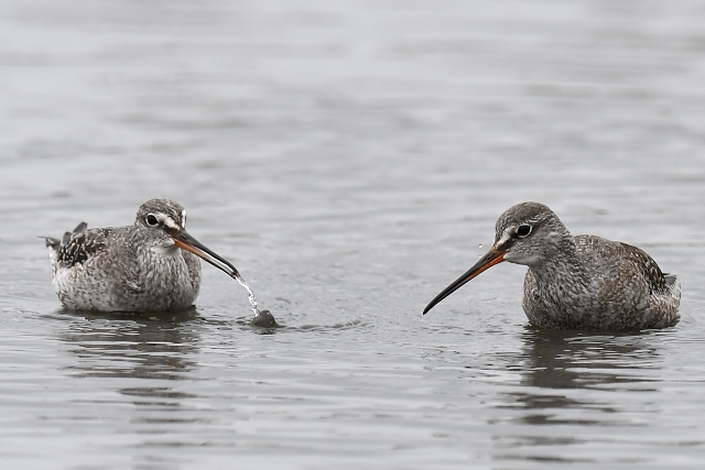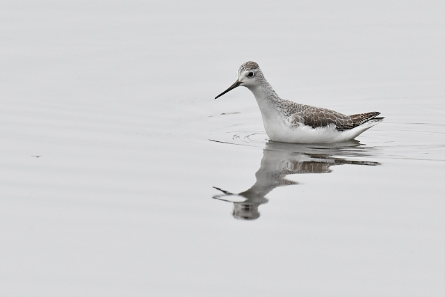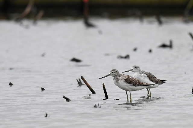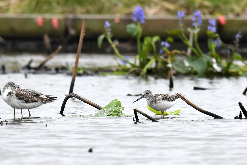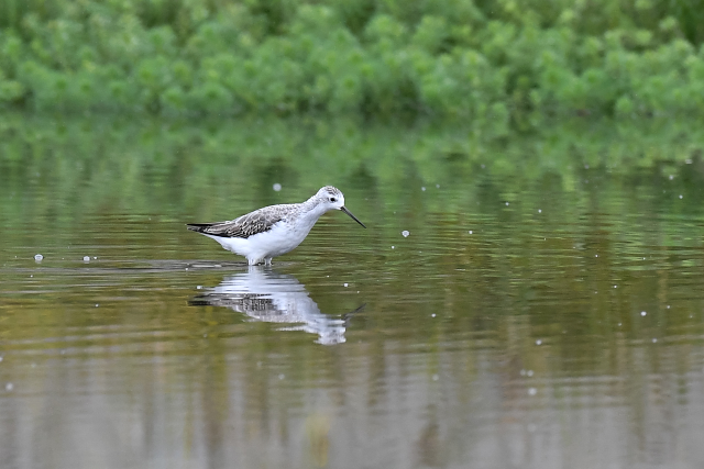 ツルシギは腹が水につかる深さのところで、ピンク色をした小さなものを食べていました。水棲昆虫のようなものなのでしょう。 オオハシシギやセイタカシギも警戒を解いたのか、近くまでやってきました。コアオアシシギを見てからオオハシシギに目を写すと、白色とグレーから華やかな色に変わり、気持ちが高揚します。
