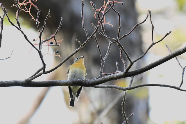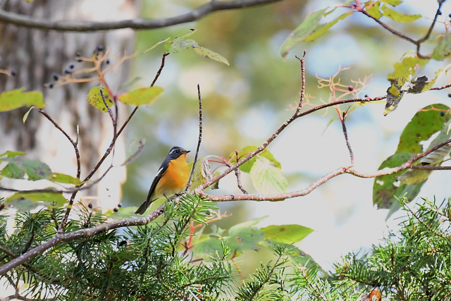 うれしいことに、今年は見ることができました。ツルマサキではなく、ミズキの実を食べているようでした。 山全体の実が少ないせいか、この時期に見られるはずの他の鳥たちの立ち寄りも少ないようです。 天気がよかったのできれいな紅葉が見られ、気持ちのよい時間を過ごしてきました。 |