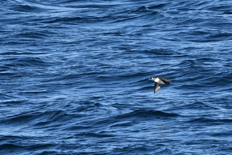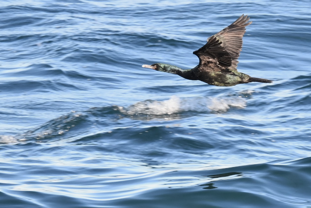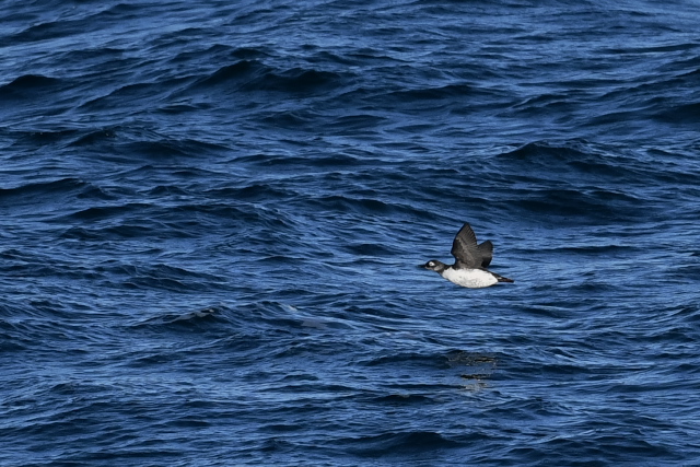 岬のハイドからは、左右へ飛ぶヒメウをよくみました。光をうけて構造色の色がよく見えていました。チシマウガラスを期待して目にするたびに写したのですが、識別が難しいと感じます。 小さな白っぽい鳥が飛んできましたが、ケイマフリでした。 近くに顔を出したのは、ゴマフアザラシでしょう。横を向くと笑っているように見えました。 |
