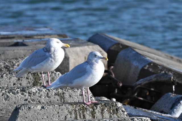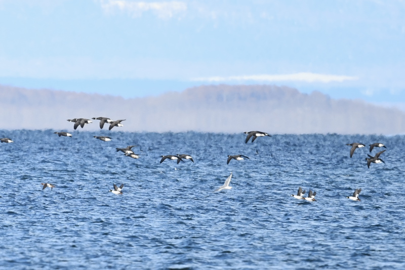 風は冷たいですが、天気はよく穏やかでウミアイサやコオリガモがよく飛んでいました。遠くにはコクガンやオオハクチョウ、スズガモなどを見ました。