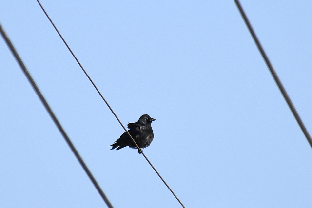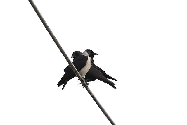 ようやく淡色型に出会いました。ミヤマガラスの群れに1羽の淡色型を見つけることができ、うれしい出会いでした。