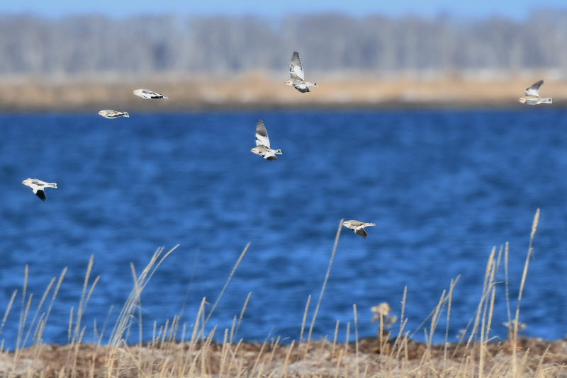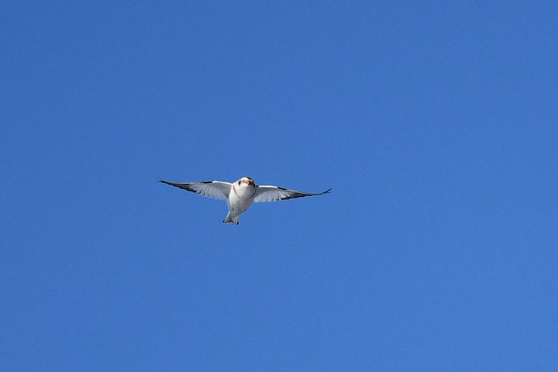 ユキホオジロの群れに出会いました。人の動きにとても敏感で、群れの場所はわかっても距離を縮めることはできません。私がいままで見た群れでは一番大きな群れでした。