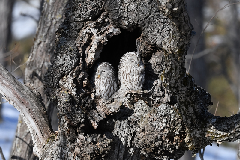 ここではシマエナガによく出会いました。 昨年2羽のエゾフクロウをみましたが、幸運にも今年も出会いました。