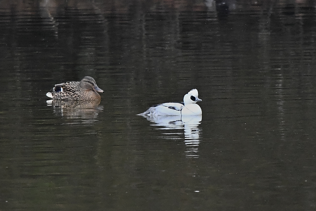 池、沼それぞれでミコアイサ雄を見ました。沼のものは遠いのですが、岸近くまでやってきました。