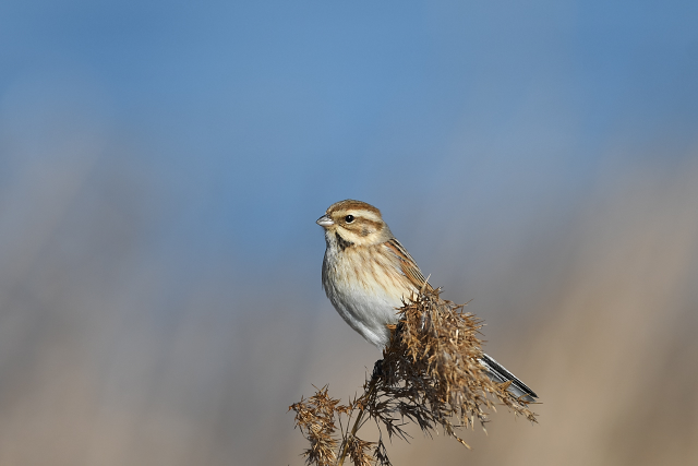ベニマシコは複数羽入っているようですが、姿を確認したのは1羽のみでした。オオジュリンは多く見かけました。 池ではミコアイサを見ました。
