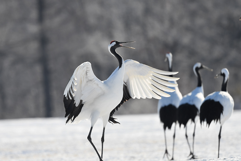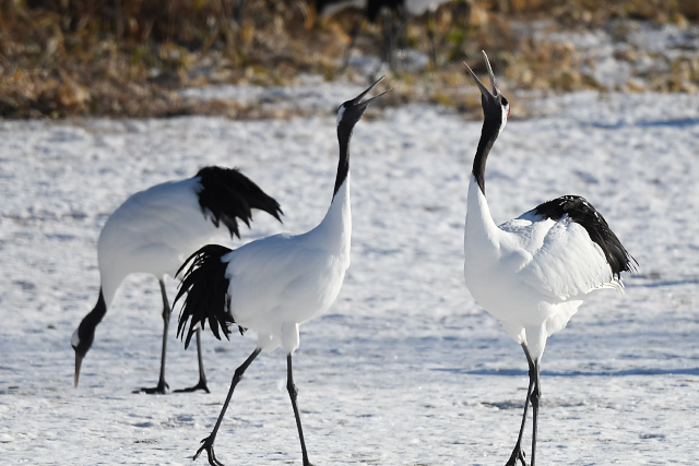タンチョウの舞いは美しく、楽しそうです。 時間をかけてゆっくり見たかったのですが、温根内ビジターセンターも訪ねたかったので、早々に移動しました。センターは閉まっていましたが、木道は自由に歩けるとのことで歩いてみました。天気がよく、気持ちのいい日で、ミヤマカケスやキツツキ類、カラ類を見ました。