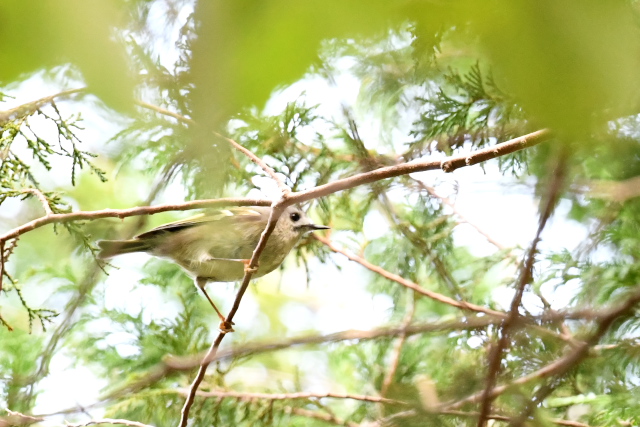 秋の味覚を味わっているのでしょうか、メジロがおいしそうに食べていました。 キクイタダキが到着していました。今季最初の一枚はこの程度でした。シーズン中に会心の一枚を手に入れたいものです。