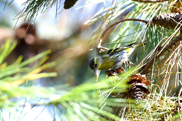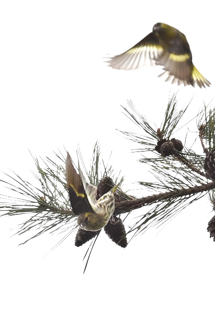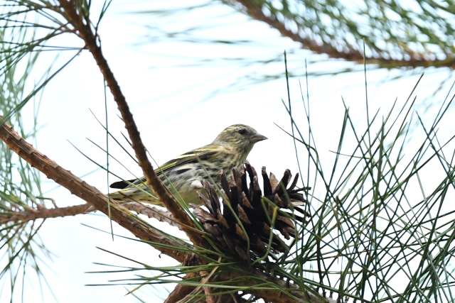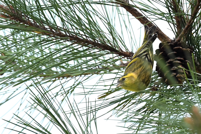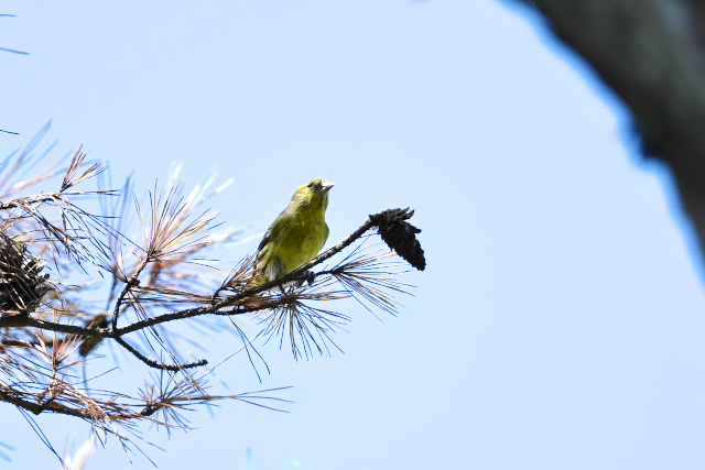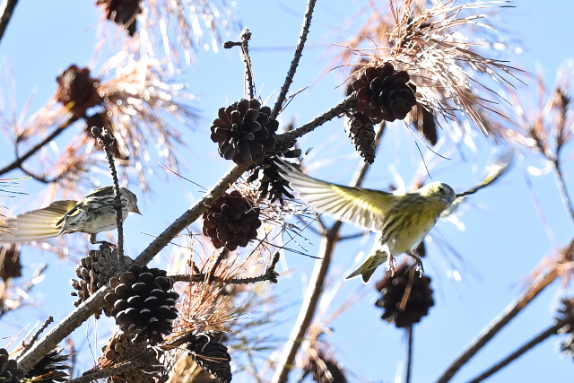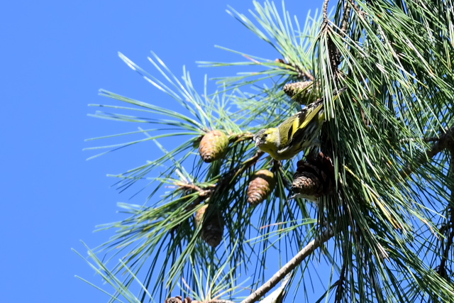 マヒワの群れにも出会いました。松ぼっくりから種を取り、器用に実を食べていました。