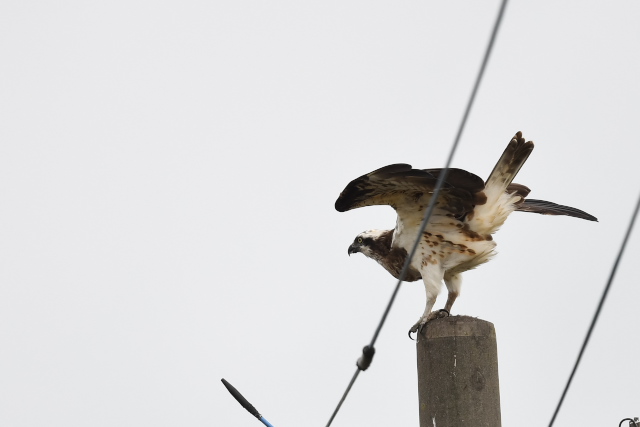 ミサゴは食事中だったようです。電線をさけようと近づいてしまったため、えさを持って飛んで行ってしまいました。