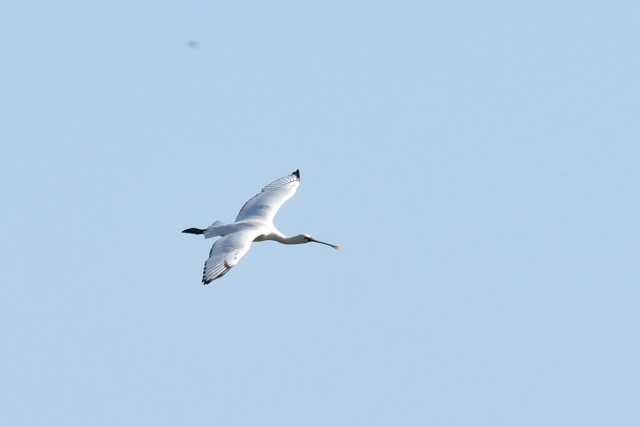現地に到着して車を降りて歩き出したとき、ちょうど、湖の方向から飛んできました。