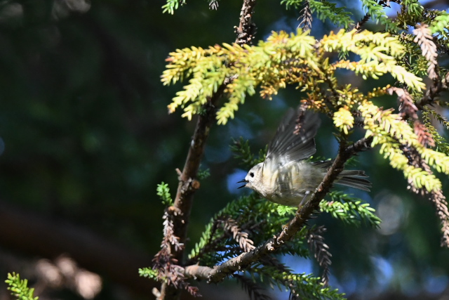 頭上のキクイタダキを追っていると、「水浴びしているぞ」誰かが教えてくれました。今日は短い観察時間でしたが、よい場面に遭遇できました。
