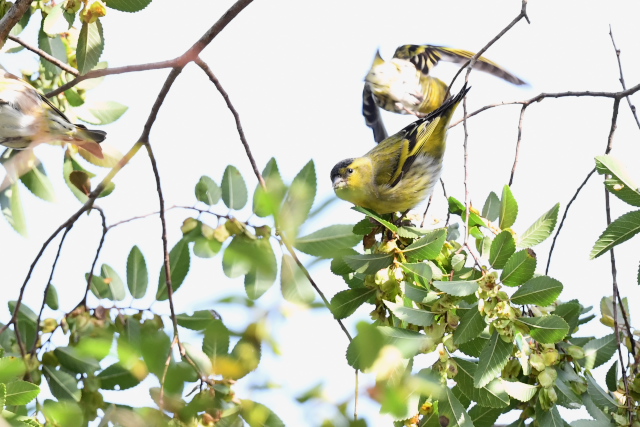 マヒワは50羽くらいの群れがにぎやかに採餌していました。