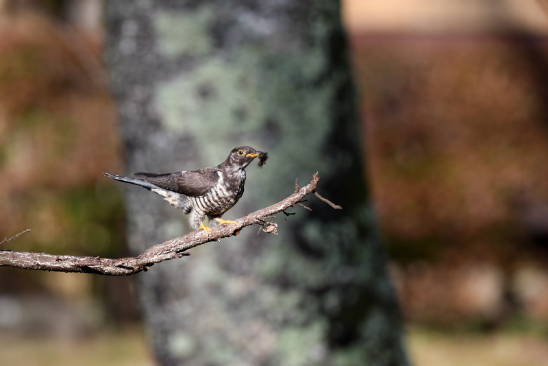 餌取りに夢中で、人をほとんど警戒していませんでした。きょろきょろ見渡して、主に地面にいる毛虫を捕らえているようでした。