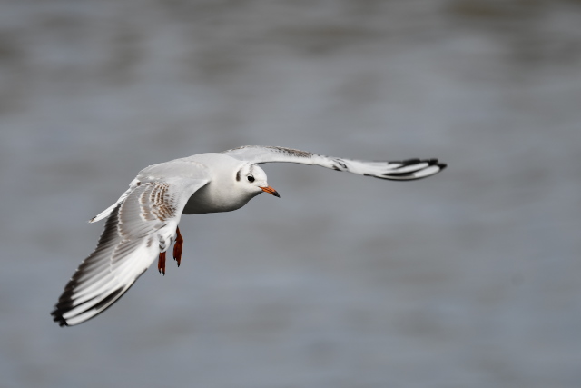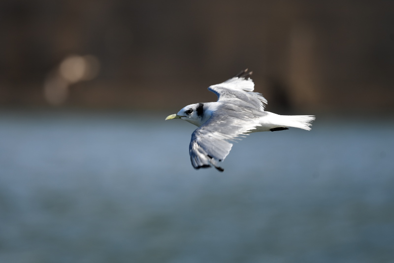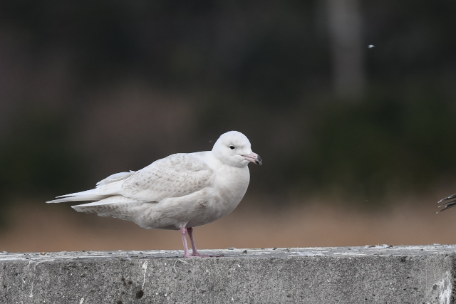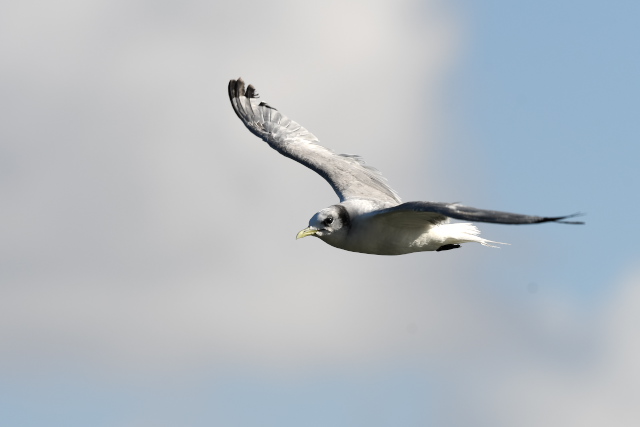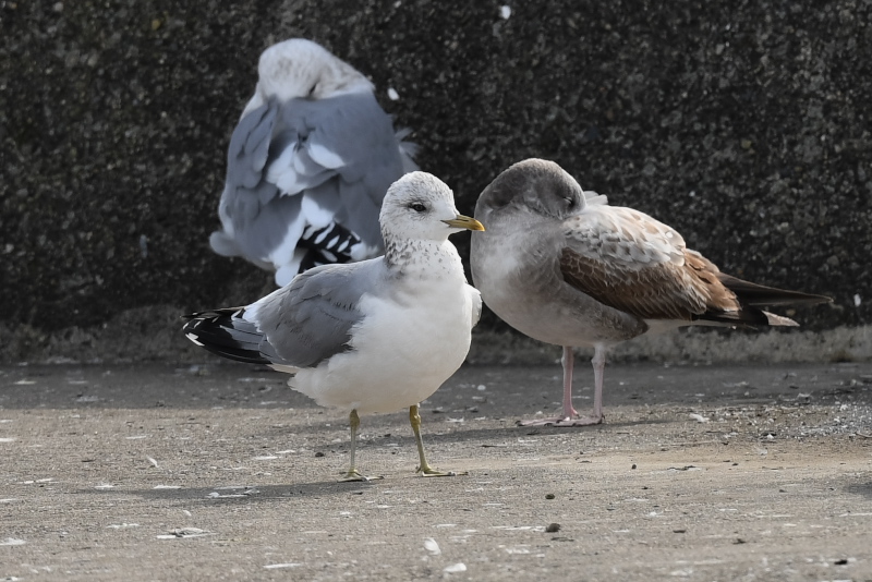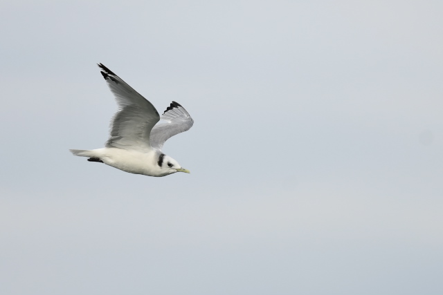ミツユビカモメは同じ場所を何度も往復しているようでした。他のカモメ類は遠くの堤防に止まっていました。