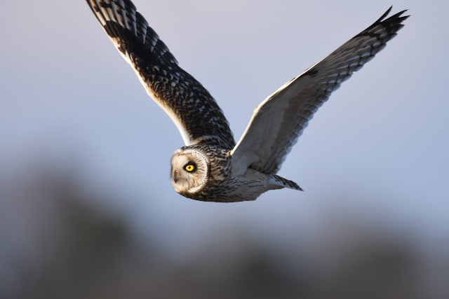 天気がよく、温かい日でした。午後3時少し前から姿を現し、広範囲に飛んでいました。どこで撮影するかは運しだいだったようです。 降りたところの近くで待っていると、どんどん近づいてきて、ついにはフレームアウトしました。久しぶりに持ったレンズは少々重く感じましたが、心地よい一日でした。