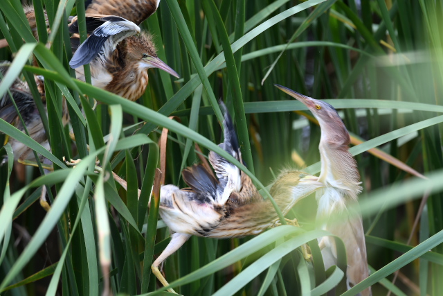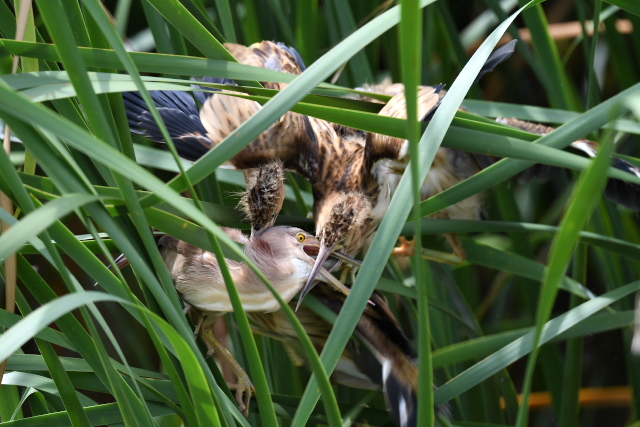 5つ子かな。親鳥が餌を運んでくると、てんやわんやの大騒ぎです。
