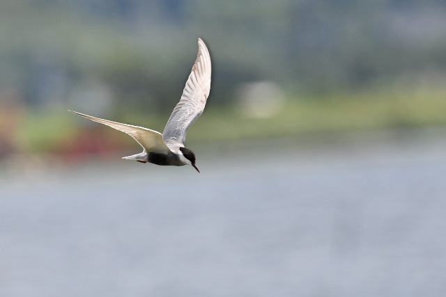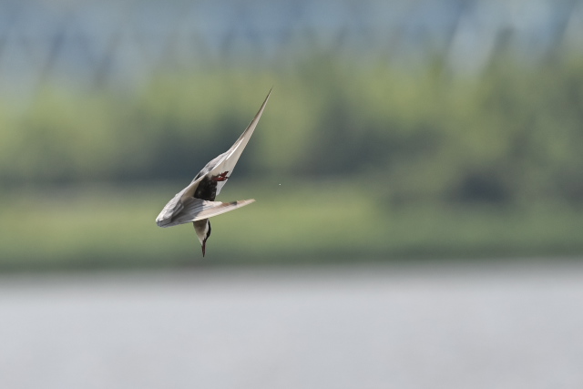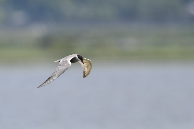 コアジサシに混じって、クロハラアジサシが飛んでいました。6羽前後でした。