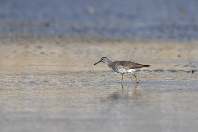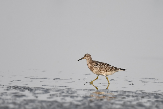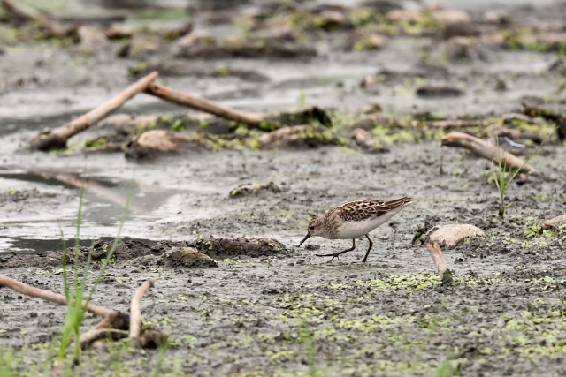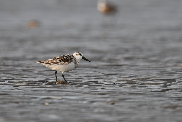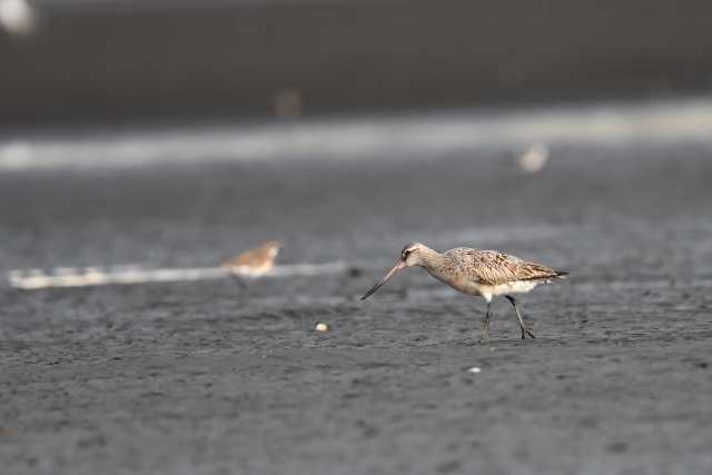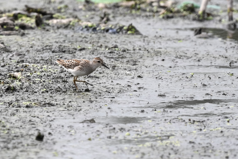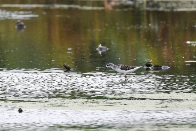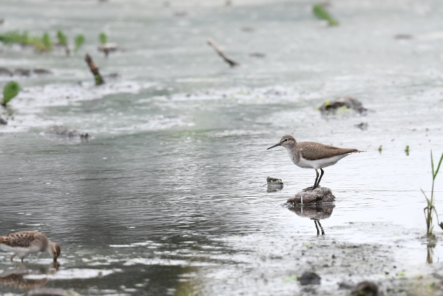 トウネンやコチドリ、タカブシギなどに混じってヒバリシギ1羽を見ました。忙しそうに採餌していました。 アオアシシギは1羽を見ました。他のシギ・チドリに比べて白く見えました。 |