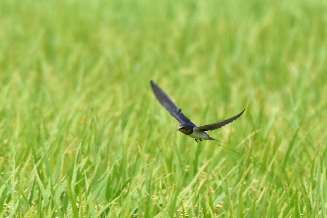稲穂をかすめるように飛び、虫を捕まえていました。