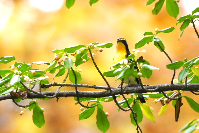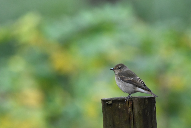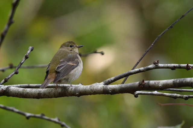 キビタキ2羽に出会いました。庭を囲む柵の上に場所を変えながら止まったり、柵の横の木の枝に止まったりして、割と長い時間近くで観察できました。 エゾビタキはまだ滞在していました。 |