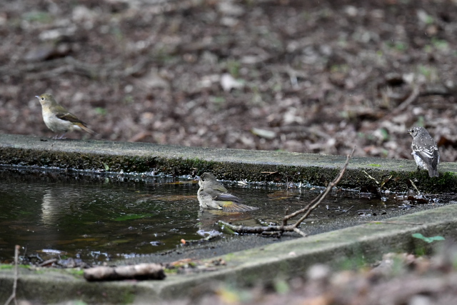 11日に見たキビタキと思いますが、今日は水場にやってきました。エゾビタキも一緒でした。