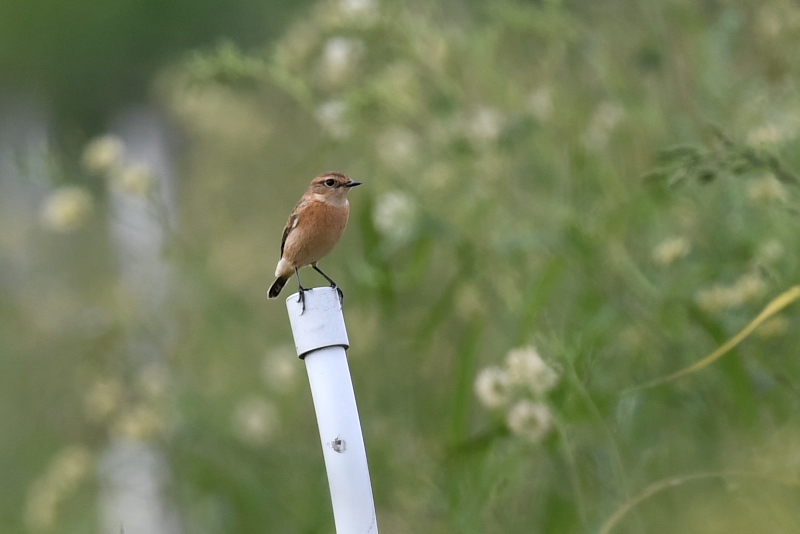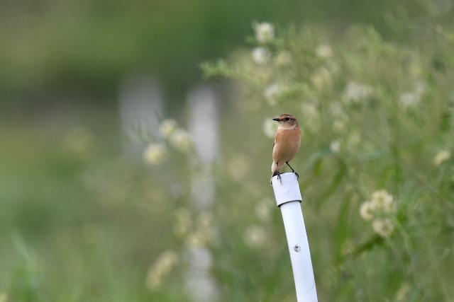 ノビタキがやってきているが、場所が定まっていない。やっと巡りあいました。アキノノゲシを背景に2羽のノビタキを見ました。 コブハクチョウは1羽のみ見ました。 |