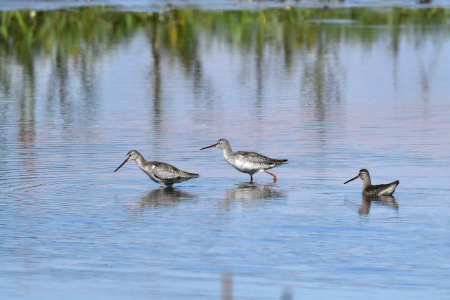 セイタカシギとコアオアシシギは1羽、オオハシシギ3羽、ツルシギ2羽、ハマシギ2羽を見ました。少し距離がありました。