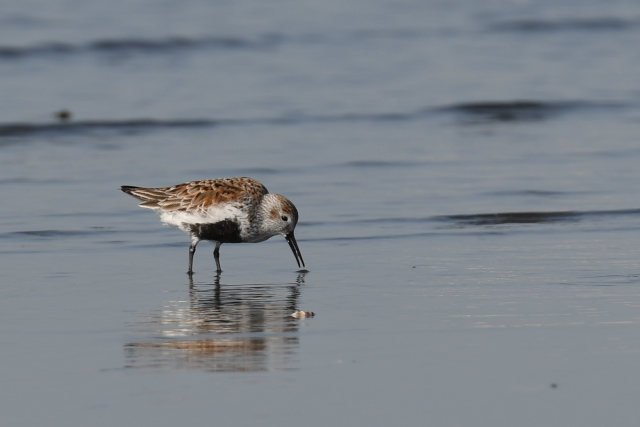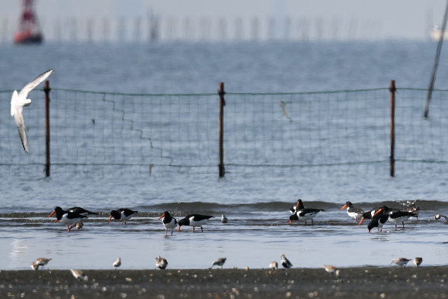 干潟は大きく広がって、多くの鳥たちはネットで囲まれたところの遠くの方で採餌していました。 ホウロクシギとチュウシャクシギはネットのないところにいて、少し近づくことができました。