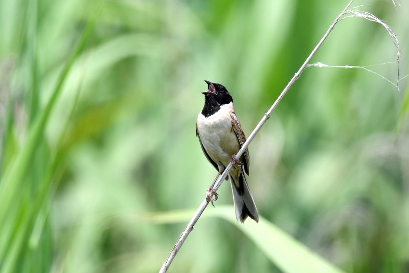 ジュクジュクジュクとオオセッカのさえずりに混じって、遠くの方からピーツピーツツーピーと高い声が聞こえます。しばらく待つと、近くに姿を見せてくれました。