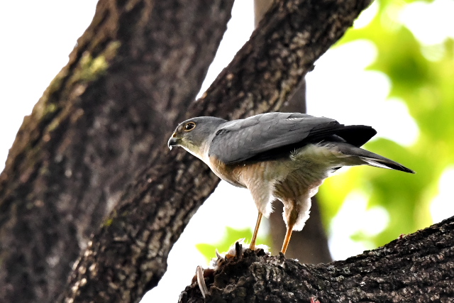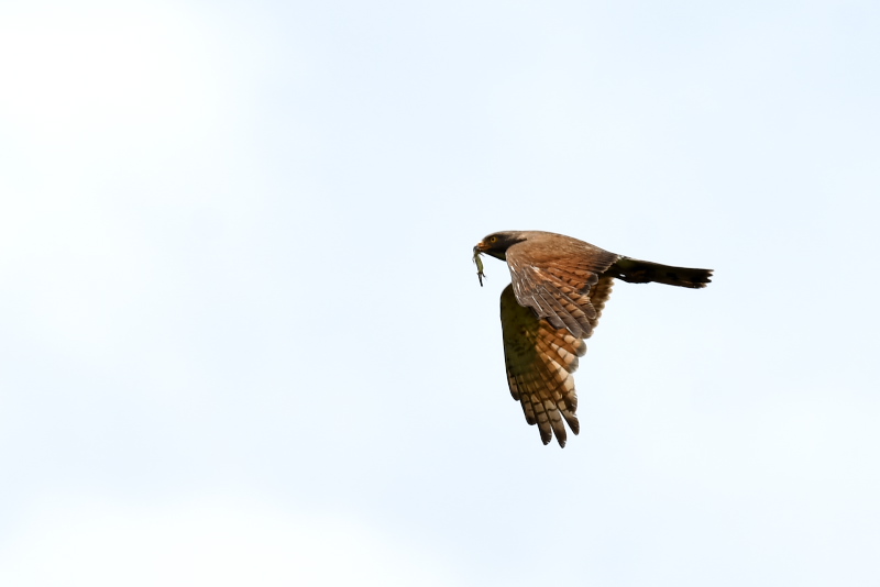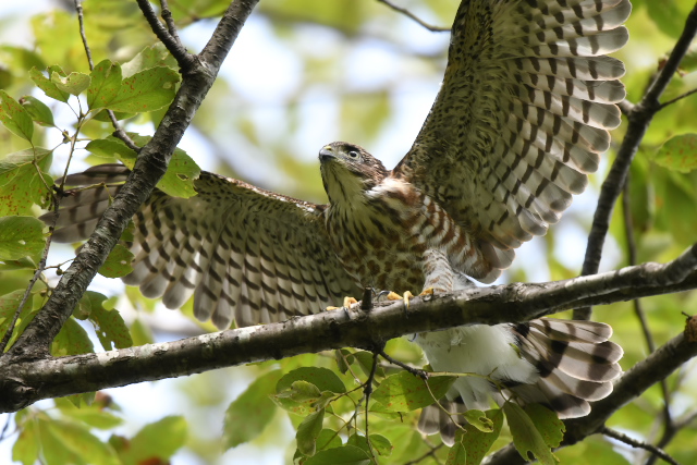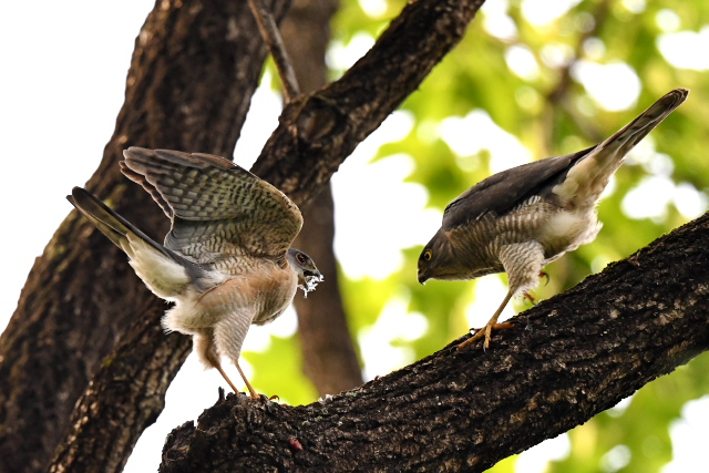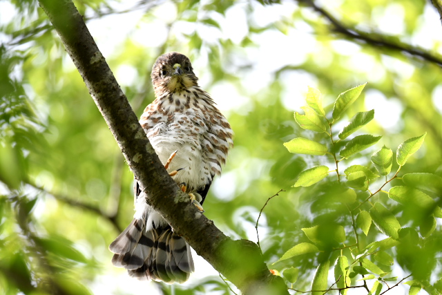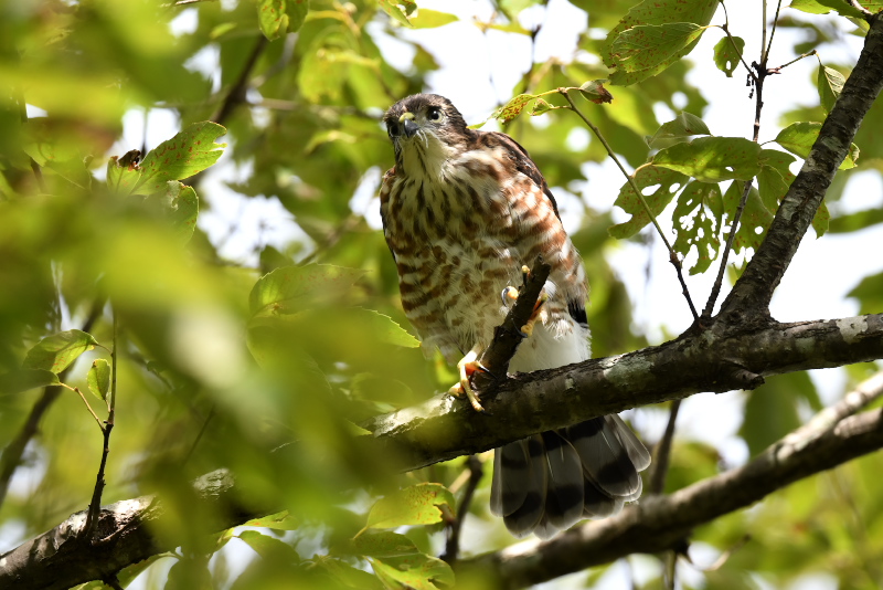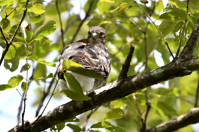 ツミは無事巣立ったようです。最初の1羽は下に落ちてしまって心配したのですが、近所の方と心やさしいバーダーの手によって事なきを得ました。元気に成長してほしいものです。 サシバはまだ巣に餌を運んでいるようです。