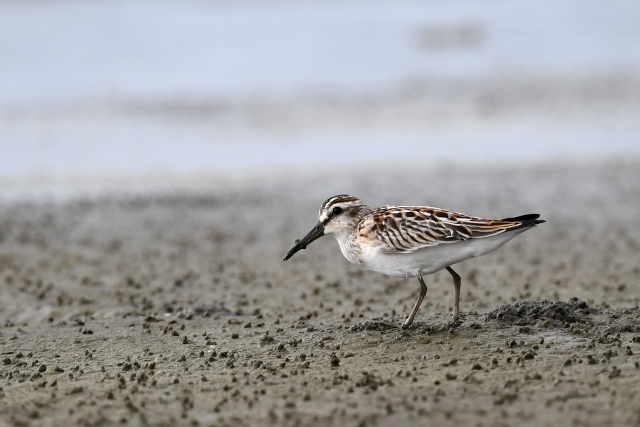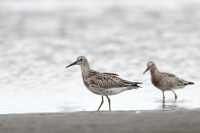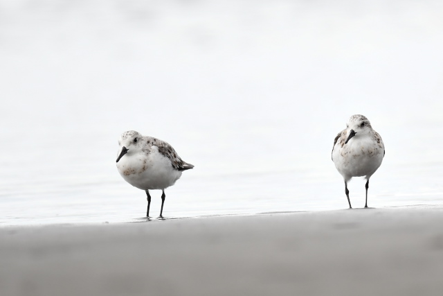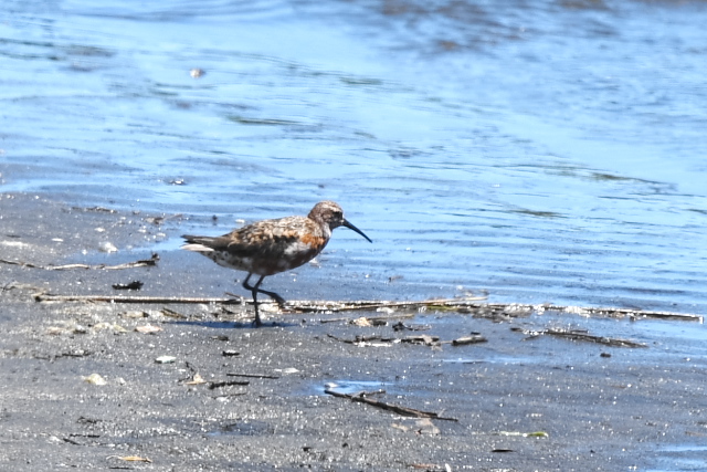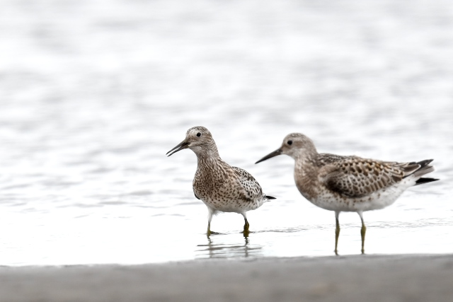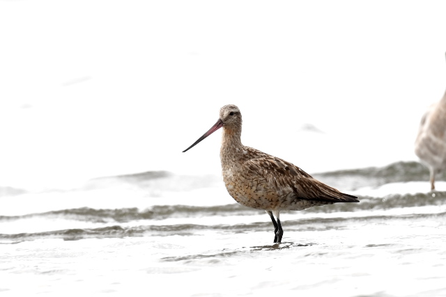 潮が引き始めて真っ先に砂浜に降りてきたのはウミネコやトウネンでしたが、時間が経つとオオソリハシシギやオバシギなど他の鳥たちも姿を見せました。 曇り空になり、涼しい風が吹く中で2時間弱快適な時間を過ごしてきました。