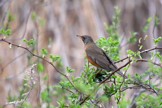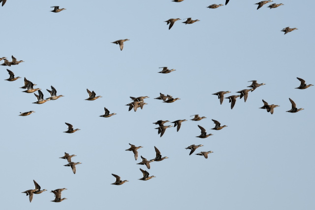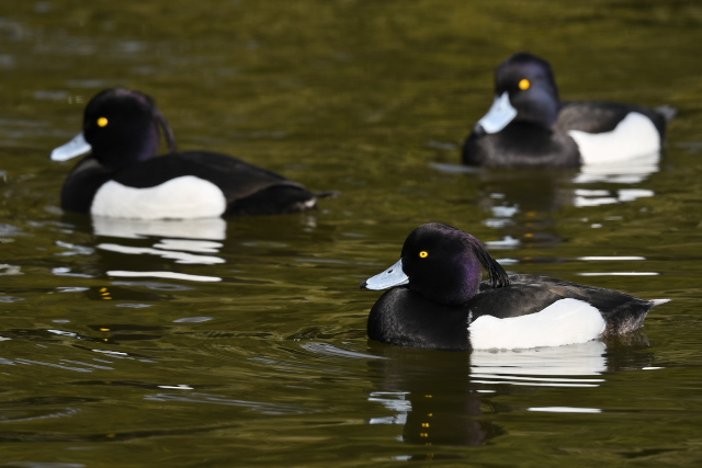 桜にやってくるメジロは時間や日によって波があるようで、かろうじて出会うことができました。ヒヨドリはよく見かけます。 沼では、岸近くをヨシガモが活発に動き、離れたところではトモエガモの小さな群れが飛んでいました。 |
