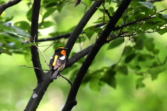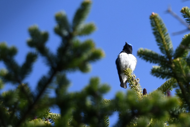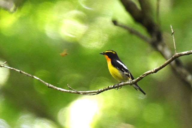 クロハラアジサシは沼の端から端までを使って飛んでいるようでした。近づいてくる時を狙ってみました。 キビタキは狭い範囲を縄張りにして囀っていました。 |