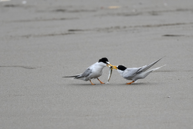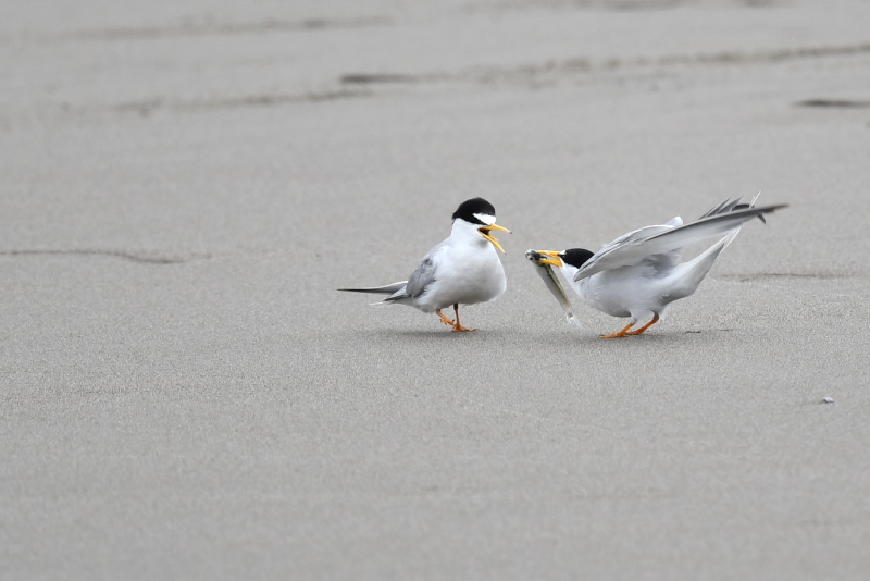 砂浜にも行ってみました。遠くにはオオミズナギドリがたくさん飛んでいました。 海岸線ではコアジサシの小さな群れが見られ、水浴びをしたり、魚をプレゼントしたりしていました。