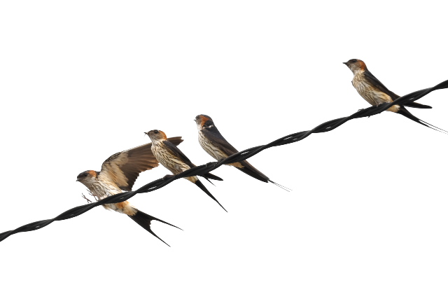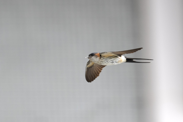 コシアカツバメは巣への出入りを繰り返してあたりを飛び回っていました。 数は少なかったですが、ヒメアマツバメも飛んでいました。 |