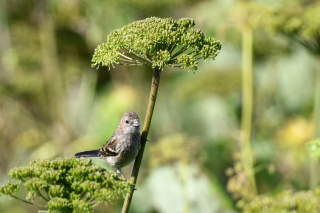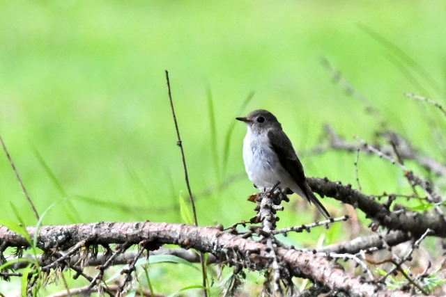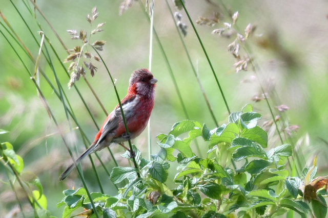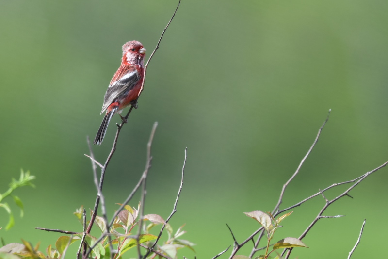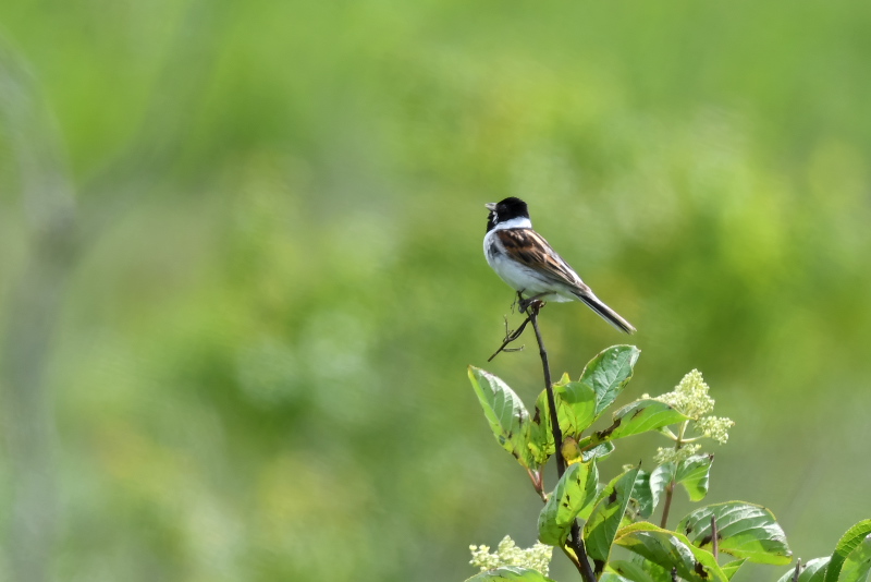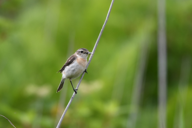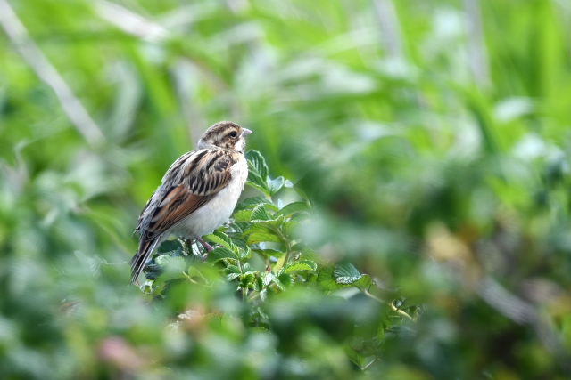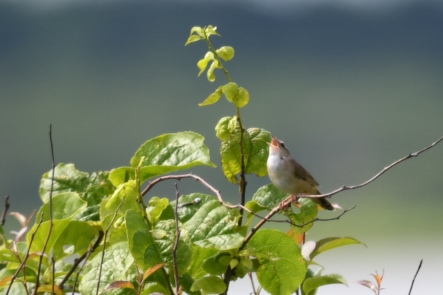 アマツバメをよく目にします。低く飛び、風切る音が聞こえるほど近いこともあります。 ニュウナイスズメとアオバトはここでは初めて写しました。 「じょっぴんかけたか」エゾセンニュウの大きな声がきこえるところで待つのでですが、声がする方向は変わるのに茂みの草がぴくりとも動かず、姿をみせません。 |