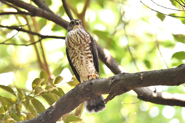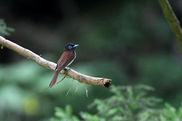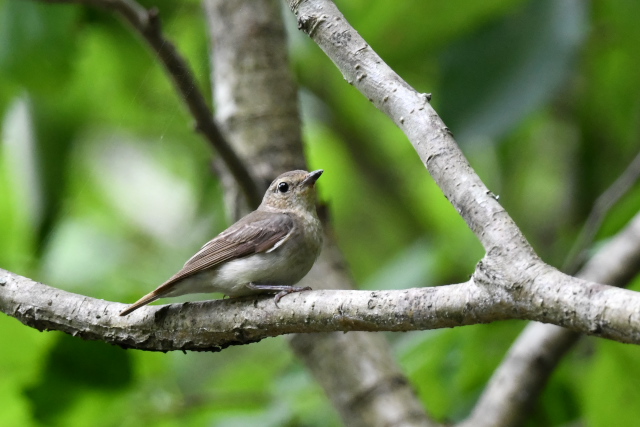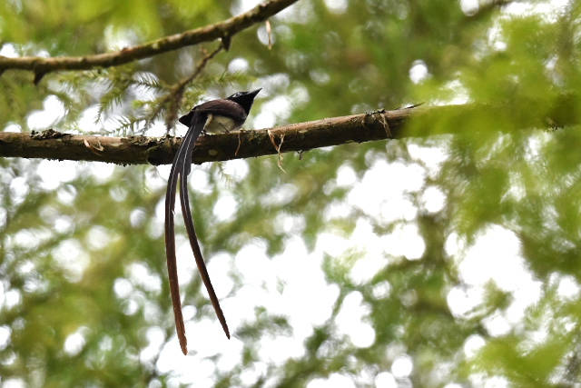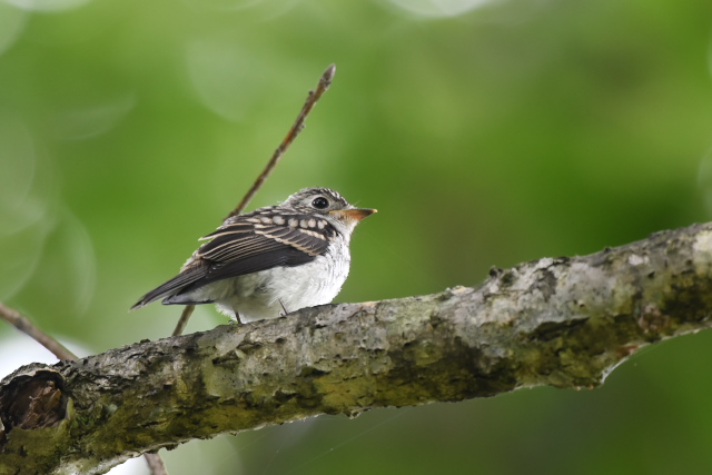 アオバズクの姿は一羽だったので、もう一羽はまだ巣の中なのでしょう。 森の中はサンコウチョウの声がよく聞こえていましたが、姿はなかなか見えません。 ヤマガラやシジュウカラの幼鳥たちの近くを飛んでいたのはオオルリの幼鳥でしょう。目の前で急にホバリングするのでびっくりしました。 |