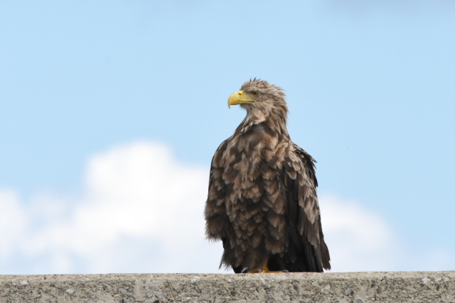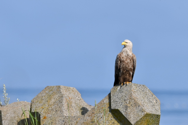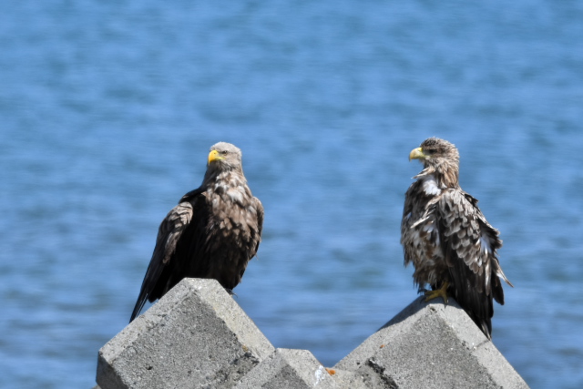 オジロワシは海岸のブロックに多数止まっていました。