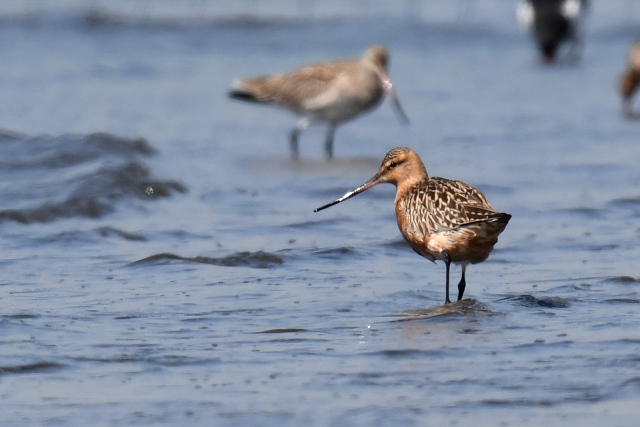 干潟はすでに広がっていて、鳥たちもあまり近くはありませんでした。 オオソリハシシギは5羽見ました。その他ミヤコドリ、ハマシギ、ミユビシギ、ダイゼン、ユリカモメなどを見ました。
