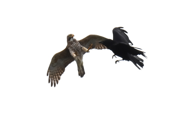 同時に4羽を見ました。 カラスからしつこい嫌がらせを受けていました。