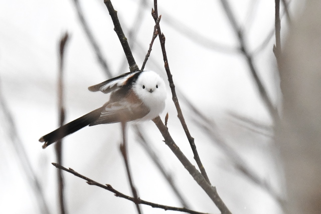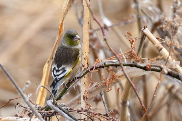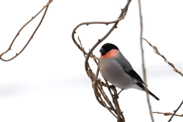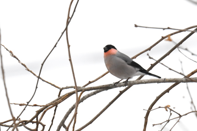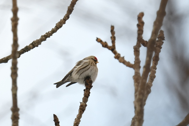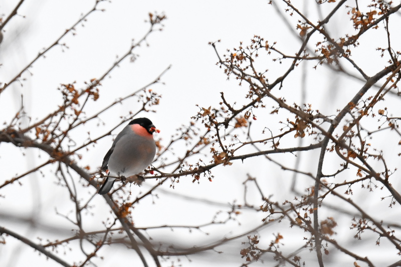 雄のウソ2羽が道路わきの木の実を食べ、少しずつ移動していました。 ベニヒワが街の中の公園にもやってきました。20〜30羽くらいの群れでしたが、短い時間で飛び去って行きました。