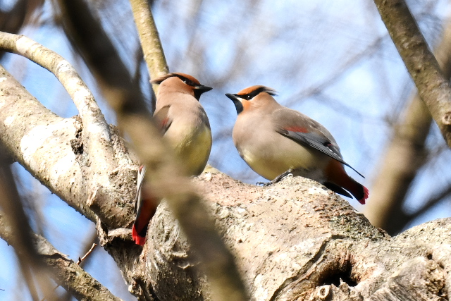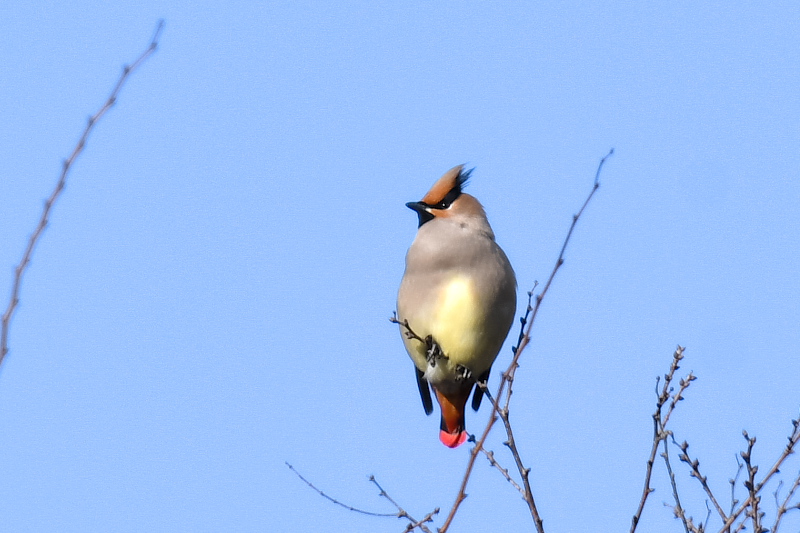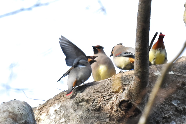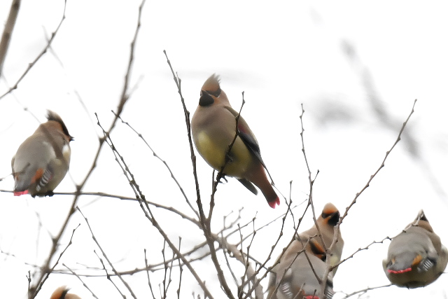 ヒレンジャクは10羽ぐらいでした。木にたまった水の奪い合いがよく見られました。天気はよかったのですが、高い、遠いなどはこれまでと同じでした。