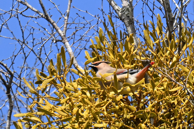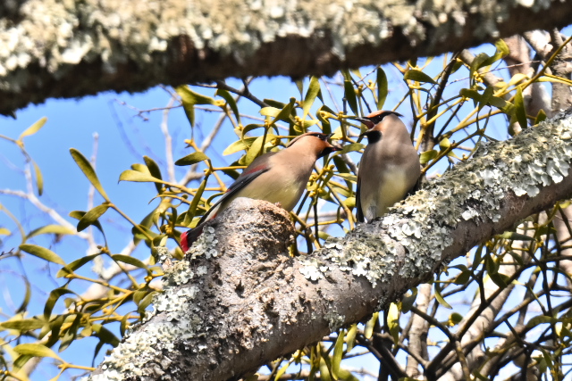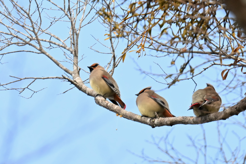 20羽ほどでした。高い位置でヤドリギの実を食べ、樹木の窪んだところにたまった水を飲んでいました。